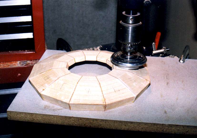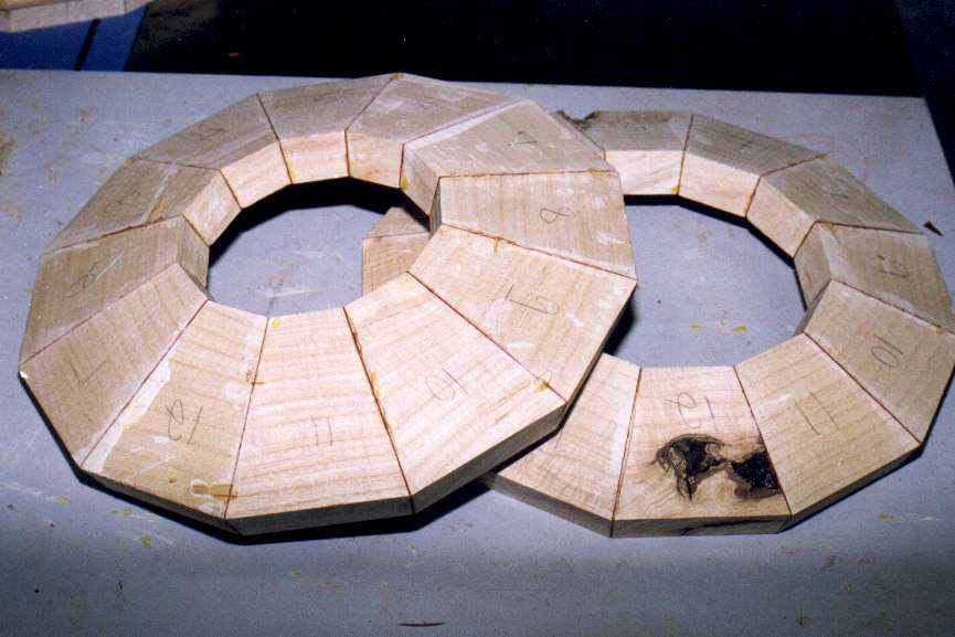 The 12 segments for one compound mitered ring are cut out. The