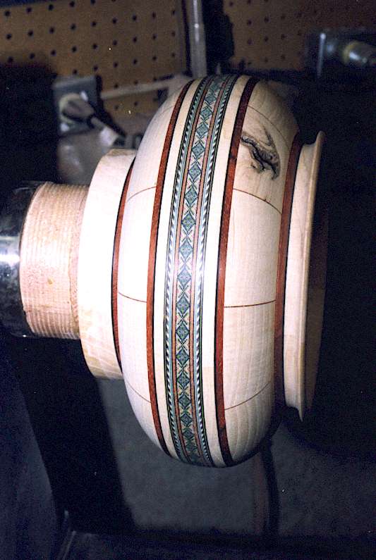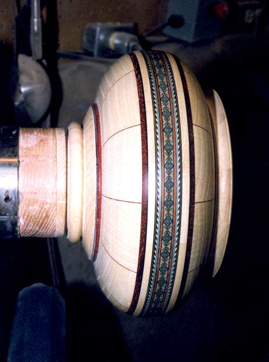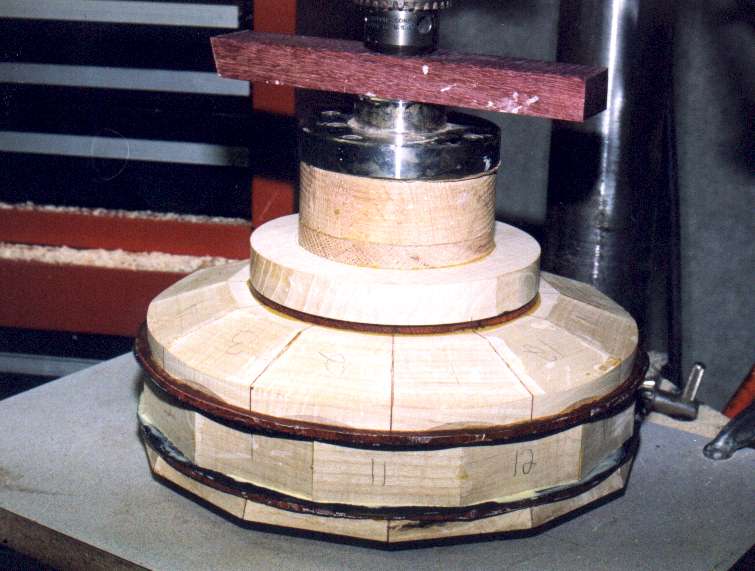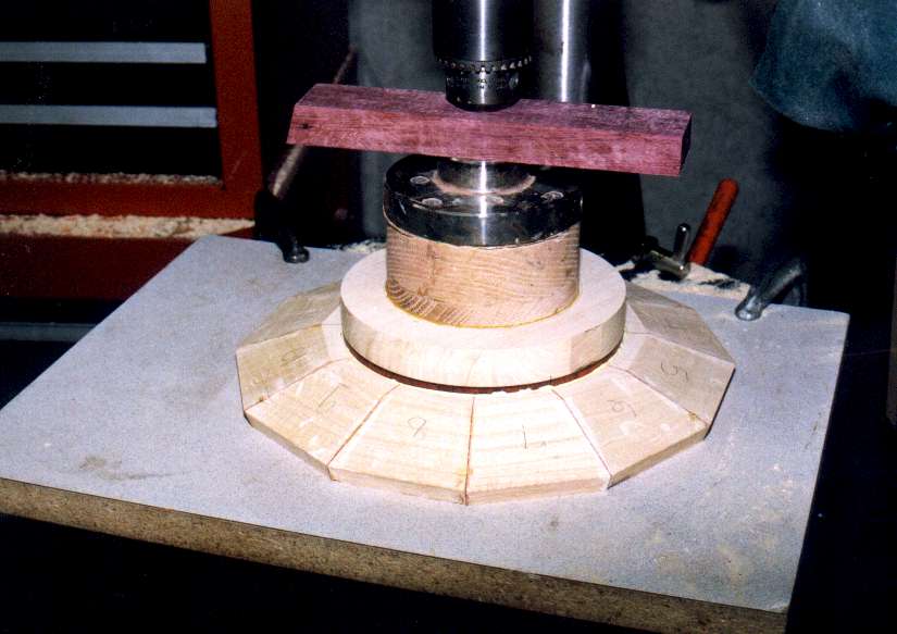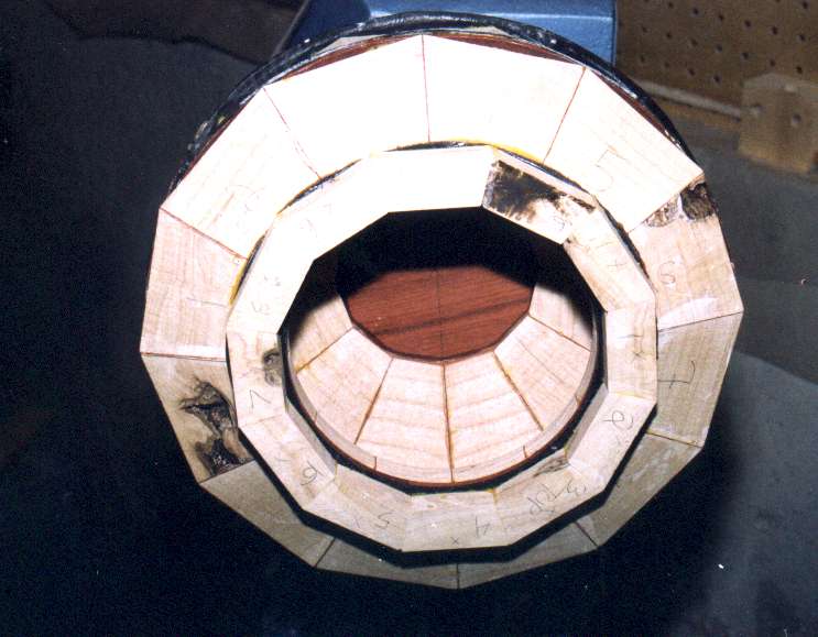 mitered segments have padauk veneer between them. Adding veneer doubles