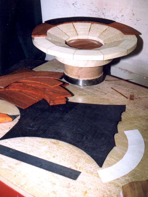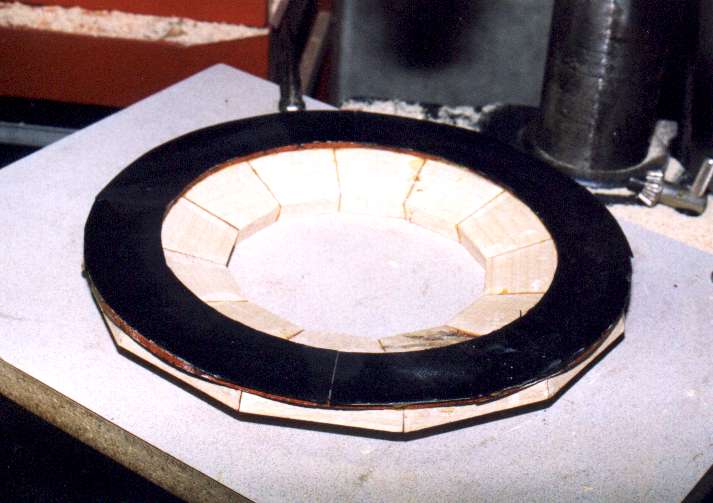 ring. I make the veneer pieces in 1/4 circle arcs to save wood waste.