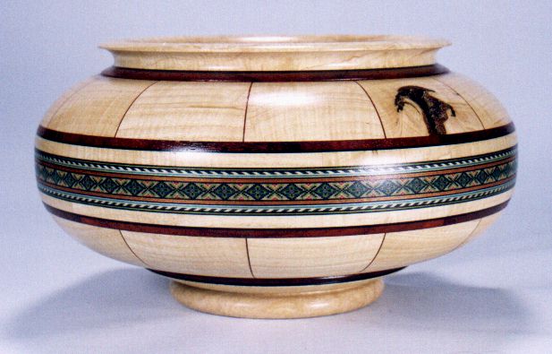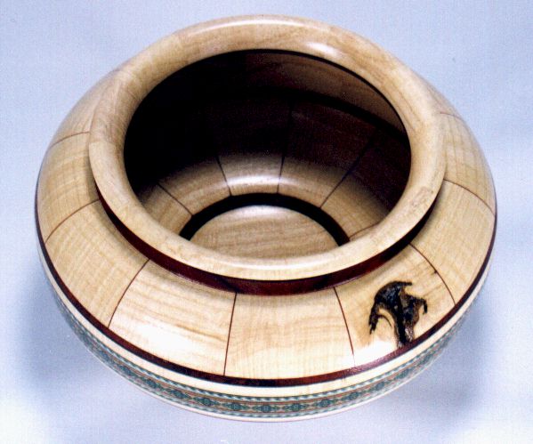 mitered rings for the bowl's top and bottom, two flat mitered rings for